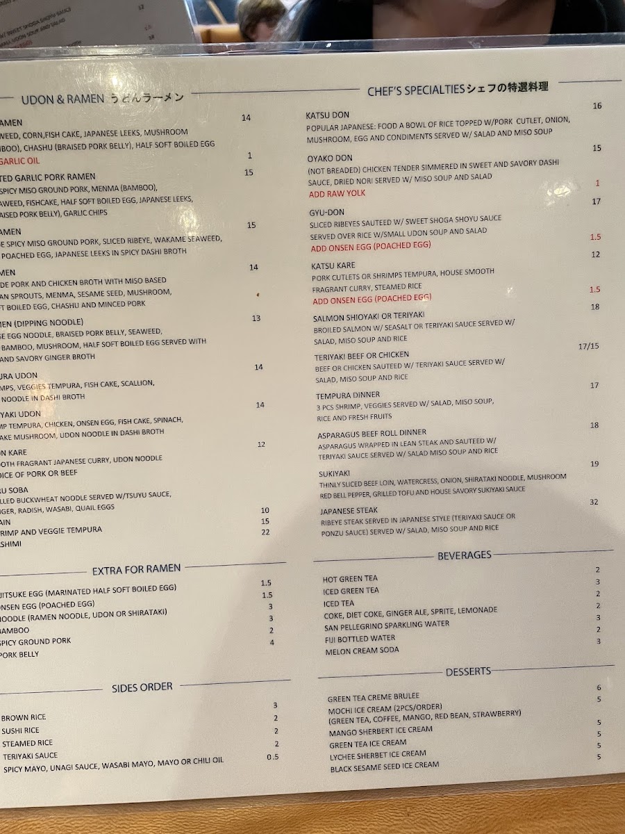 Homemade spicy miso ground pork, sliced ribeye, wakame seaweed, fish cake, poach egg, Japanese leeks in spicy dashi broth.