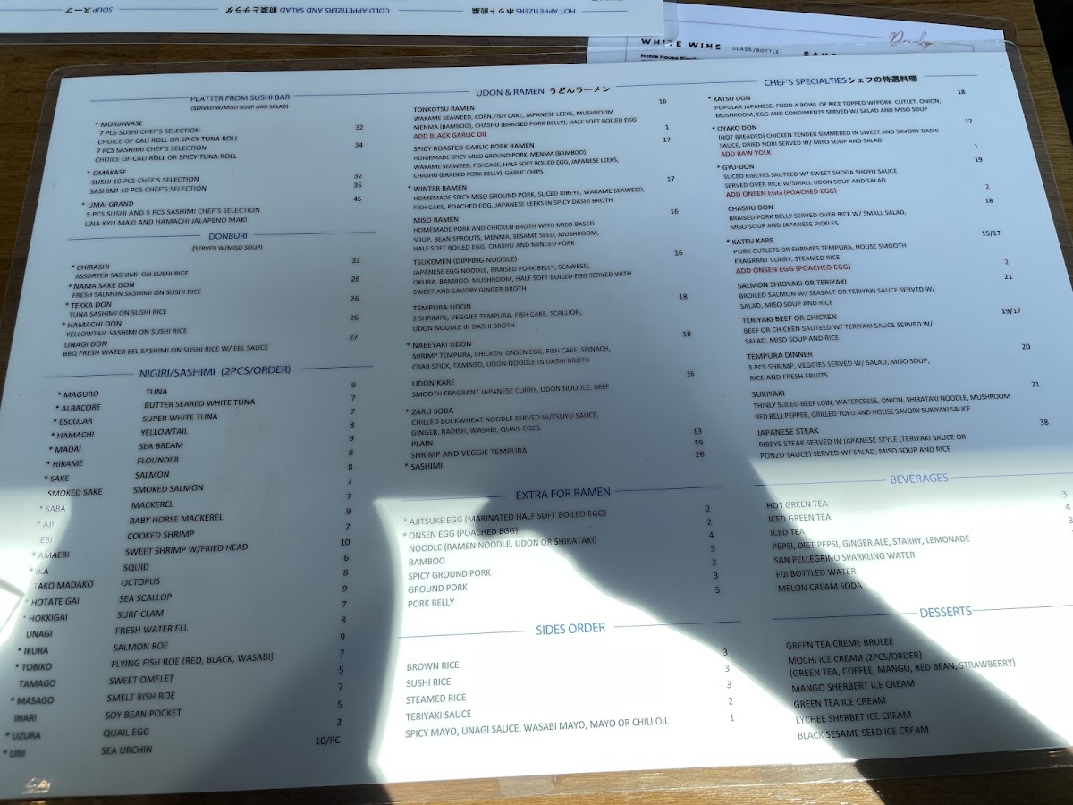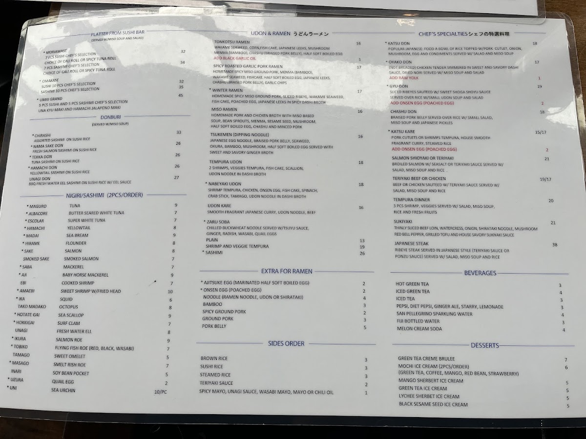 Wakame seaweed, corn, fish cake, half boiled egg, Japanese leeks, menma (bamboo) and chashu (braised pork belly).